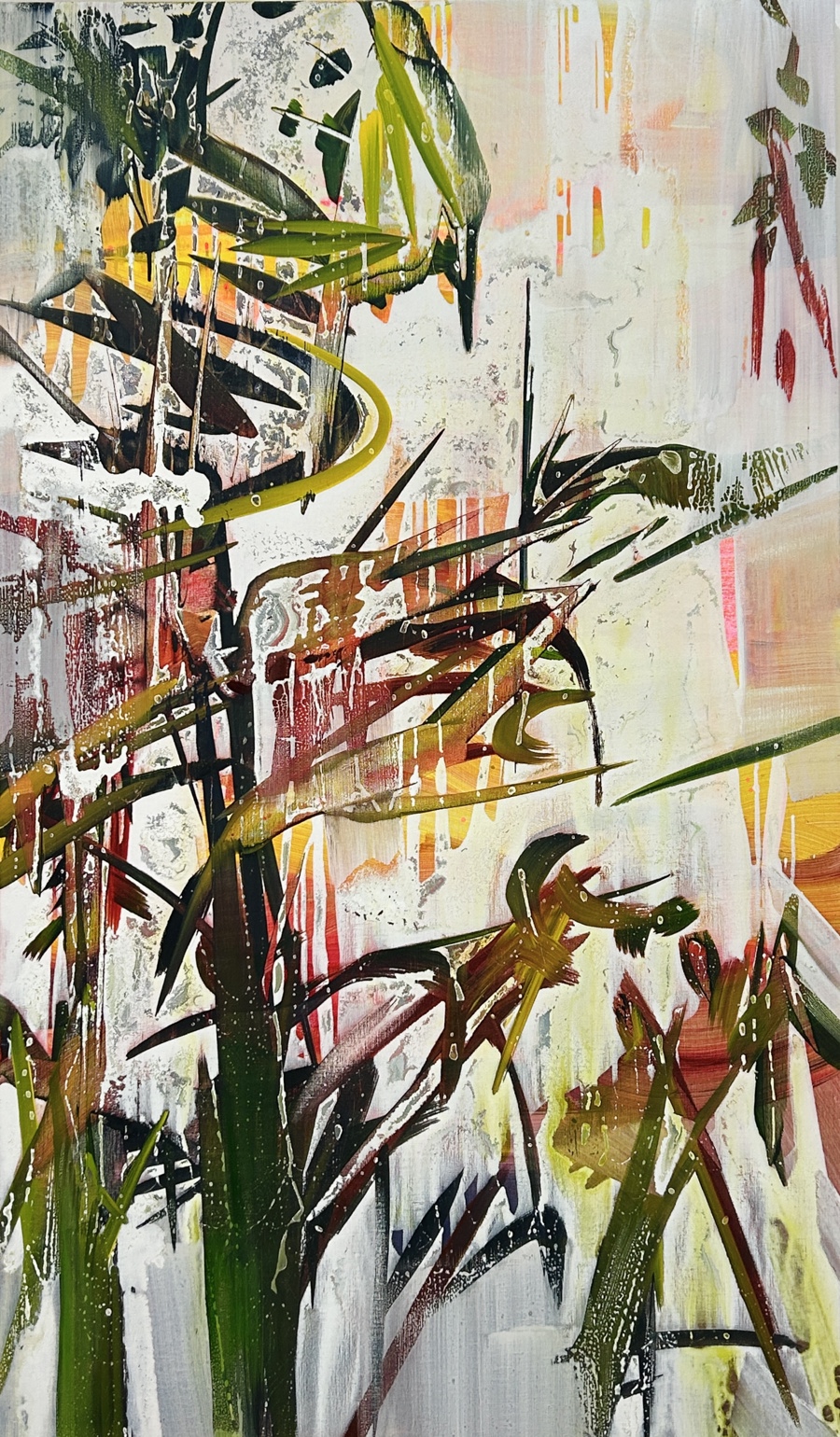 De natuur is overal om ons heen en diep in ons. Landschappen zijn tot op de dag van vandaag een belangrijk onderwerp voor kunstenaars. We kunnen niet genoeg aandacht vestigen op het belang van respectvol omgaan met onze natuur en omgeving. Voor Danielle is naast de abstractie van de natuur, het ontstaansproces van een schilderij, een hoofdthema in haar werk. Ze maakt grote schilderijen in krachtige gebaren, en een explosie aan kleur. Vertrouwend op een intuïtief en expressief schilderproces. Haar werken zijn in lagen opgebouwd, het doek wordt afwisselend neergelegd en rechtop gezet. In haar opvallende, krachtige gebaren waarmee ze de verf aanbrengt, schuilt een zekere durf in handschrift en penseelstreken, een vastberadenheid bij het kiezen en behandelen van haar materialen. Grote plassen acrylverf worden over rake penseelstreken in olieverf uitgegoten. Delen worden weggepoetst of geschuurd, andere delen worden uitgelicht en extra benadrukt door een nieuwe verflaag. Kijkend naar haar werk voel je dat ook zij zich haar onderwerp zo volledig eigen heeft gemaakt dat het onderscheid tussen zien, ervaren en maken wegvalt. Elk schilderij getuigt van een diep doorvoeld idee van wat wij als natuurlijk beschouwen en wordt daardoor bijna even vanzelfsprekend als de natuur zelf.