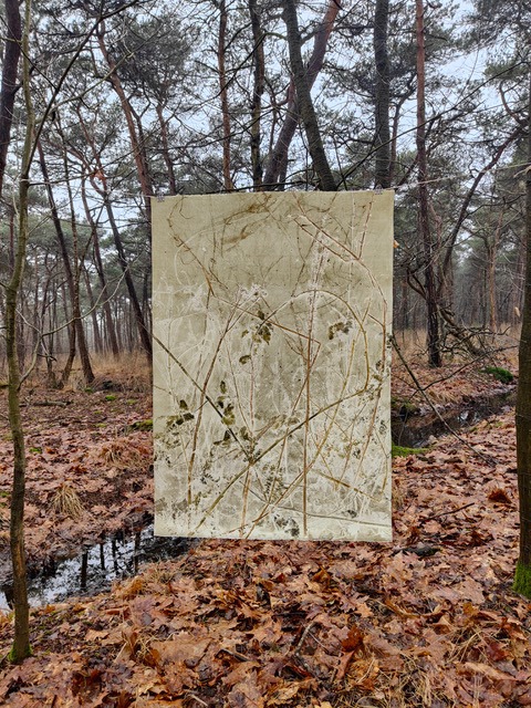 Sarah van Rossem (1990) laat zich inspireren door het bos. Haar fascinatie ligt in het observeren van natuurlijke processen, structuren en texturen. Van boombast tot bladeren, van wortels tot het spel van licht en kleur door de vegetatie. Tijdens wandelingen door bosrijke gebieden verzamelt zij zorgvuldig materialen die zij later in haar atelier gebruikt voor haar grafische kunstwerken.